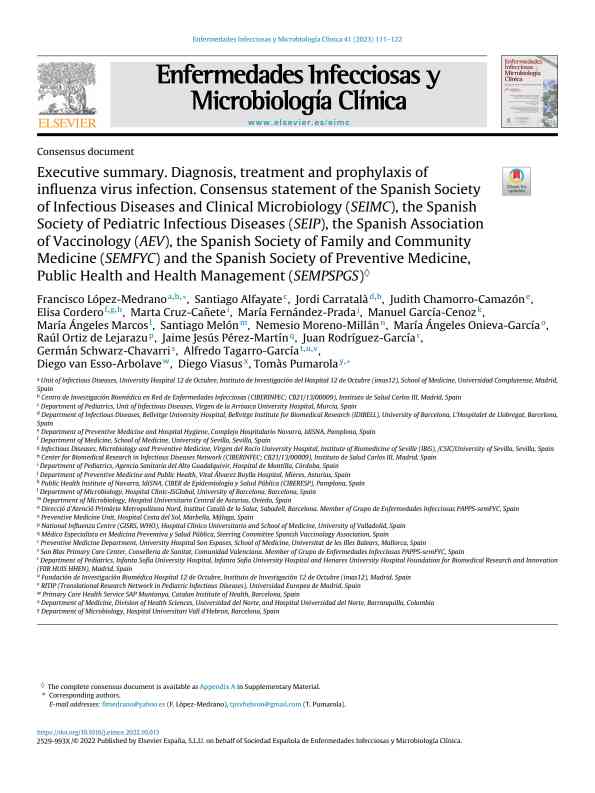 influenza virus infection. Consensus statement of the Spanish Society