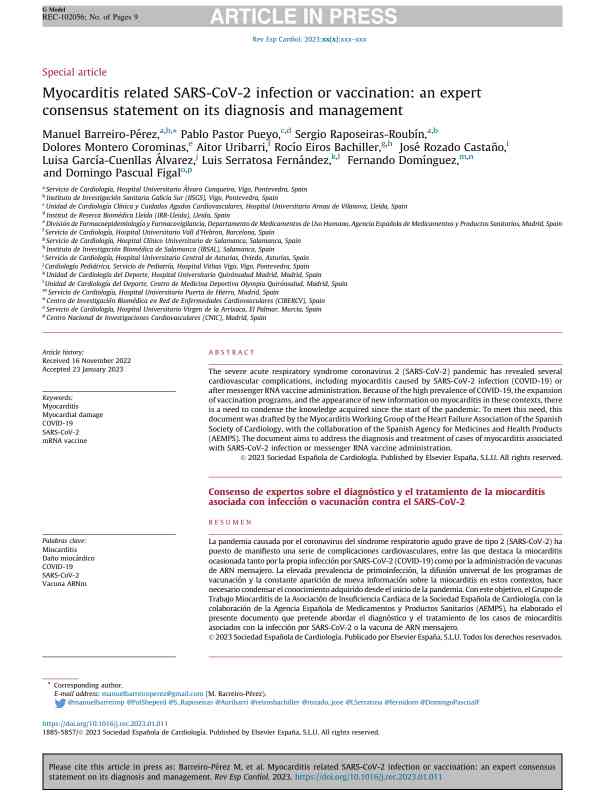 Myocarditis related SARS-CoV-2 infection or vaccination: an expert