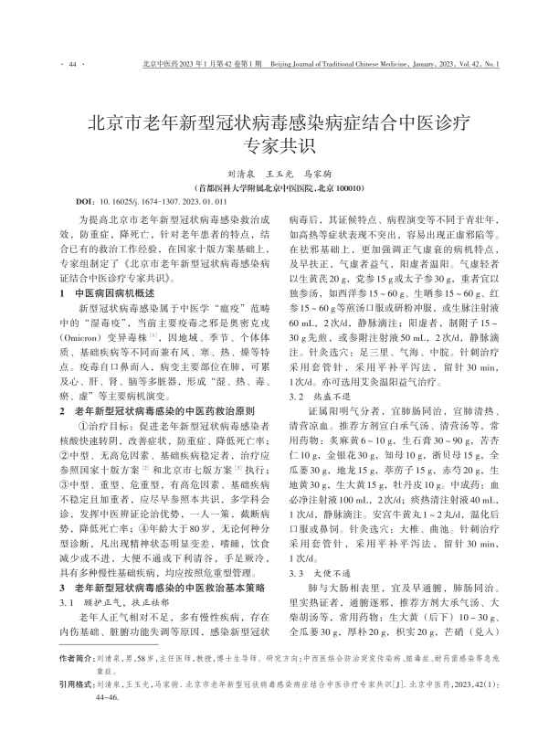 为提高北京市老年新型冠状病毒感染救治成效,防重症,降死亡,针对老年患者的特点,结合已有的救治工作经验,在国家十版方案基础上,专家组制定了 《北京市老年新型冠状病毒感染病证结合中医诊疗专家共识》。…… |
