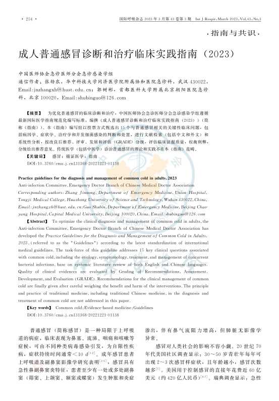 称 《指南》)。本 《指南》编写组以投票方式甄选出15个与普通感冒相关的关键性临床问题,包