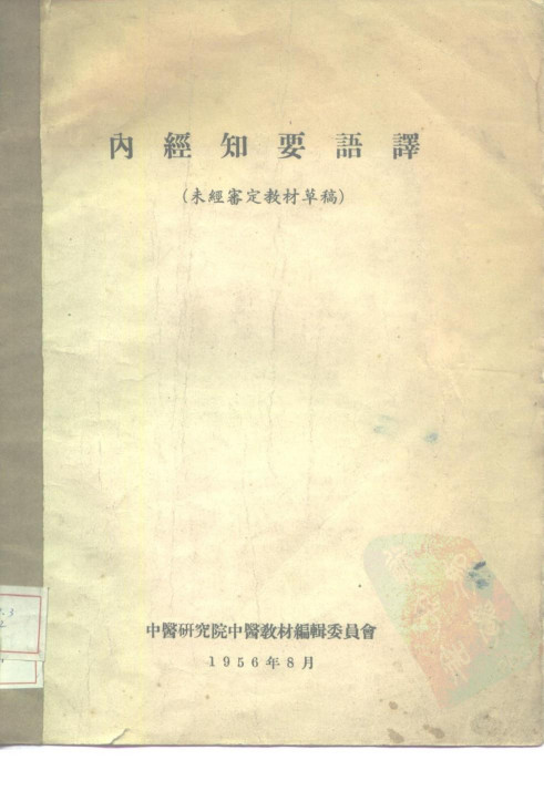 中医研究院中医教材编辑委员会编. 内经知要语译 未经审定教材草稿. 中医研究院中医教材编辑委员会, 1956.08.…… |