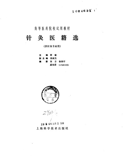 针灸医籍选 供针灸专业用