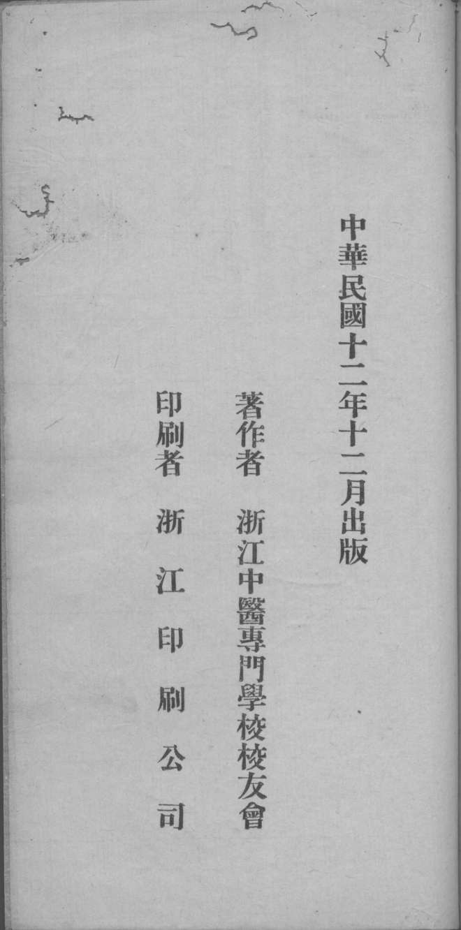 浙江中医专门学校校友会年刊R2-09 中華民國十二年十二月出版…… |