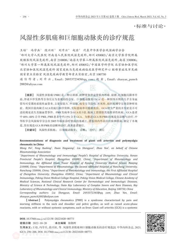 中 40%~60% 合并 PMR,PMR 患者中约 15% 合并 GCA。为推进 GCA 和……