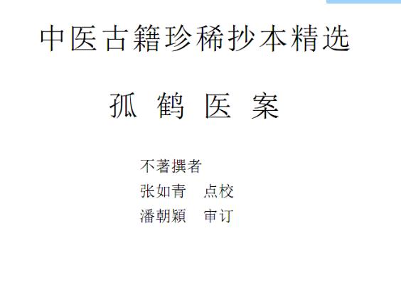 中医古籍珍稀抄本精选--孤鹤医案…… |