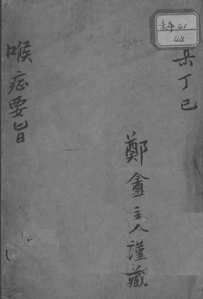 陈振儒著. 喉症要旨.民國六年七月初版 鄭畫主人谨藏……