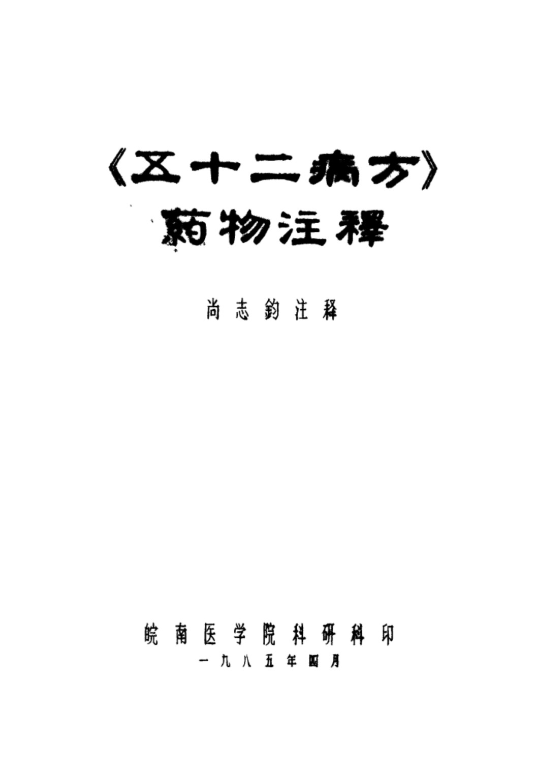 尚志钧注释. 《五十二病方》药物注释. 皖南医学院科研科, 1985.04.…… |