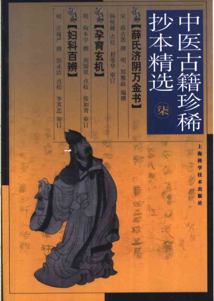 《薛氏济阴万金书》作者薛古愚,字将仕,宋代医家,生卒不详,擅长女科。著有《女科万金方》(简称《万金方》)、《女科胎产问答要旨》(三卷)、《产后歌诀治验》、《玉峰郑氏女科秘传》等,均有抄本传世。《薛氏济阴万金书》三卷,是在薛氏《万金方》基础上,由郑敷政编撰。郑字和阳,明代昆山人,郑氏女科传人,得家传薛氏《济阴万金书》更为铨次,而成《薛氏济阴万金书》。全书涉及经、孕、胎、产及妇科杂病,每证后均有治方,且加减详微,“叙证颇详,立方显豁”,文体流畅简练,论理明彻易懂。理法方药贯为一体,对临床有切实的指导作用……