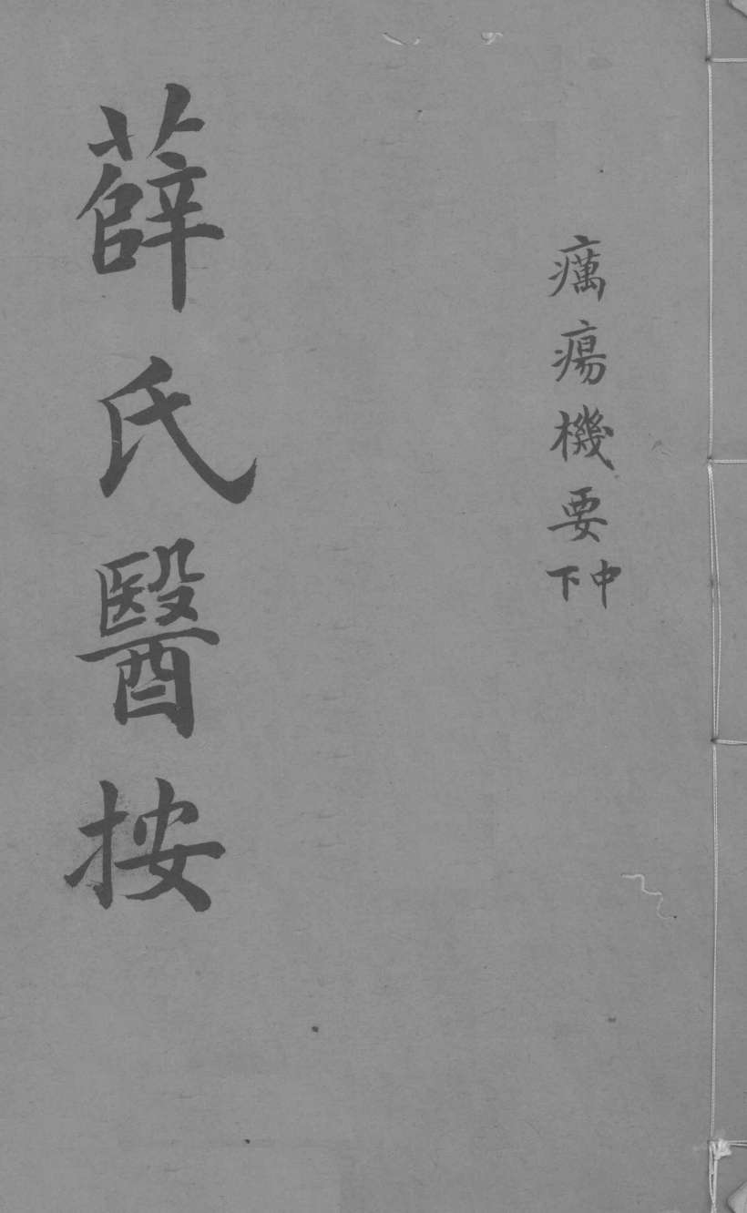 薛氏医按 疠痬栈要 下、中 吳郡薛已著 新都吳玄有校……