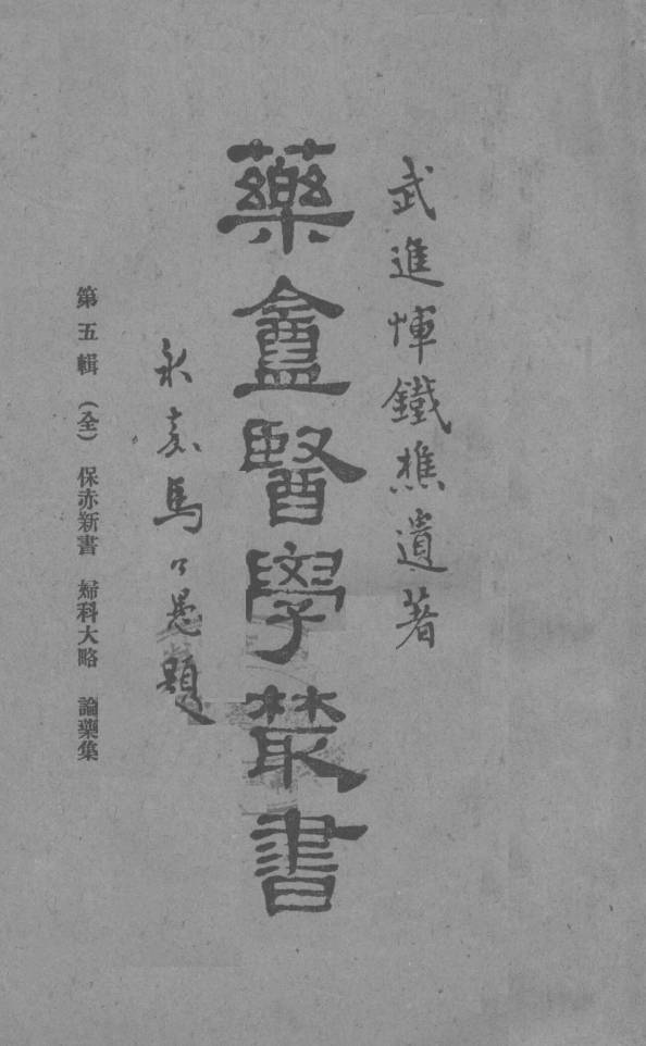 药盒医学丛书 第3辑 上 武進惲鐵樵遺著