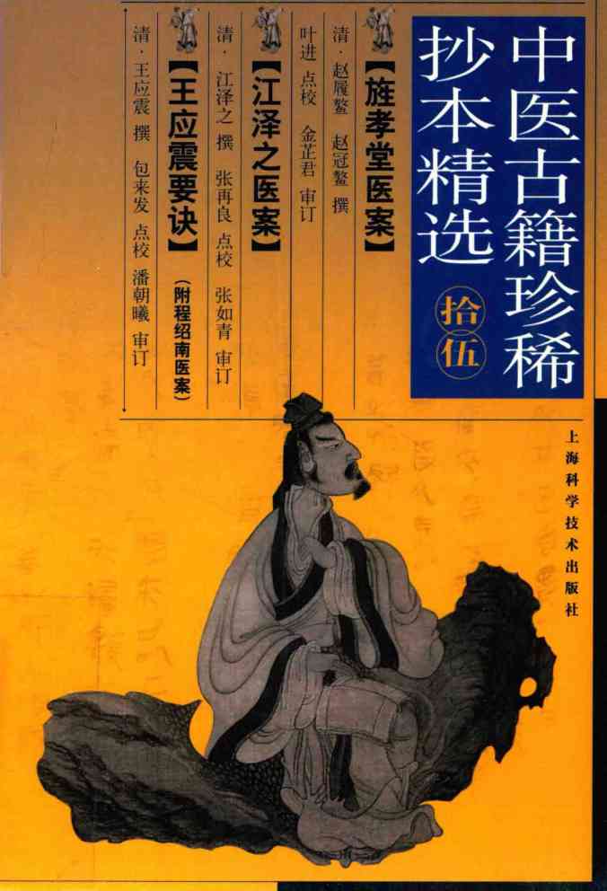 清·赵履鳌,赵冠鳌撰;叶进点校;金芷君审订;清·江泽之撰;张再良点校;张如青审订;清·王应震撰;包来发点校;潘朝曦审订. 中医古籍珍稀抄本精选 15 旌孝堂医案 江泽之医案 王应震要决 附:程绍南医案集. 上海:上海科学技术出版社, 2004.02.…… |