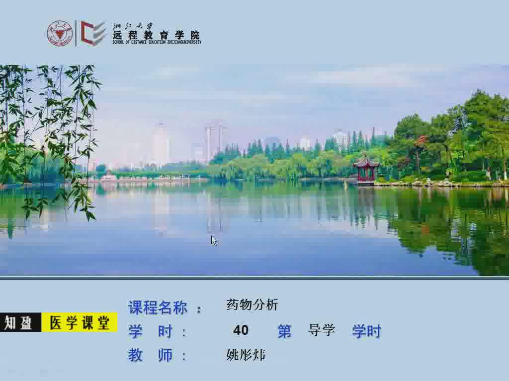 本课程为浙江大学药物分析精品课程教学视频,全套视频共41集,由知盈医学课堂整理免费共享。